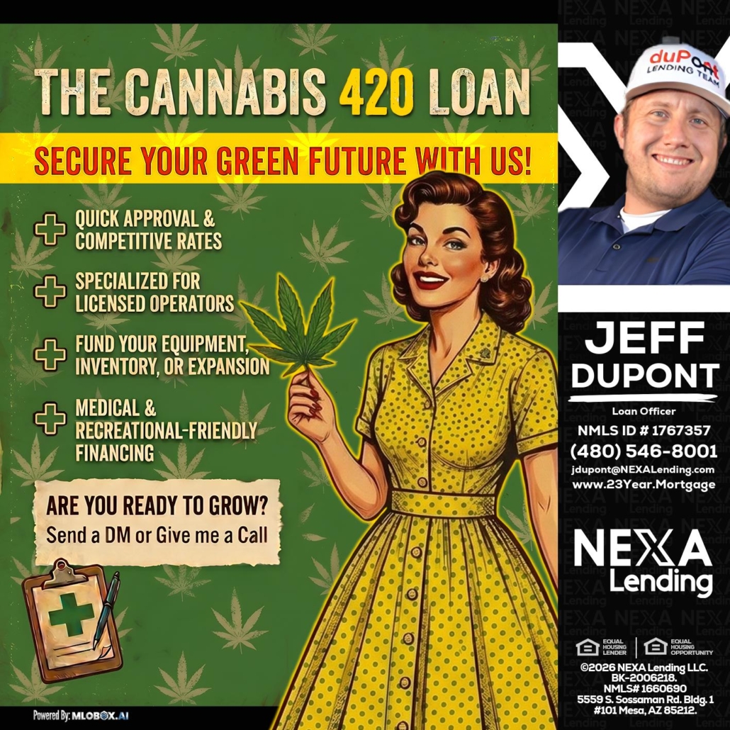 CELEBRATE 420 WITH A CANNABIS LOAN - Jeff duPont -duPont Lending TeamWant to learn more about how to take advantage of the 420 Cannabis Loan?