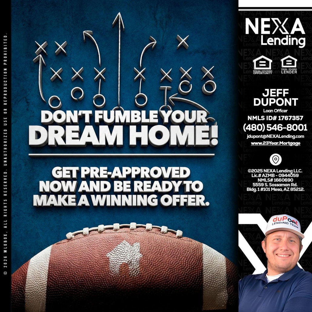Hi, my name is Jeff duPont. I’m a Loan Officer with NEXA Lending LLC., offering personalized mortgage solutions, fast customized quotes, great rates and service with integrity.