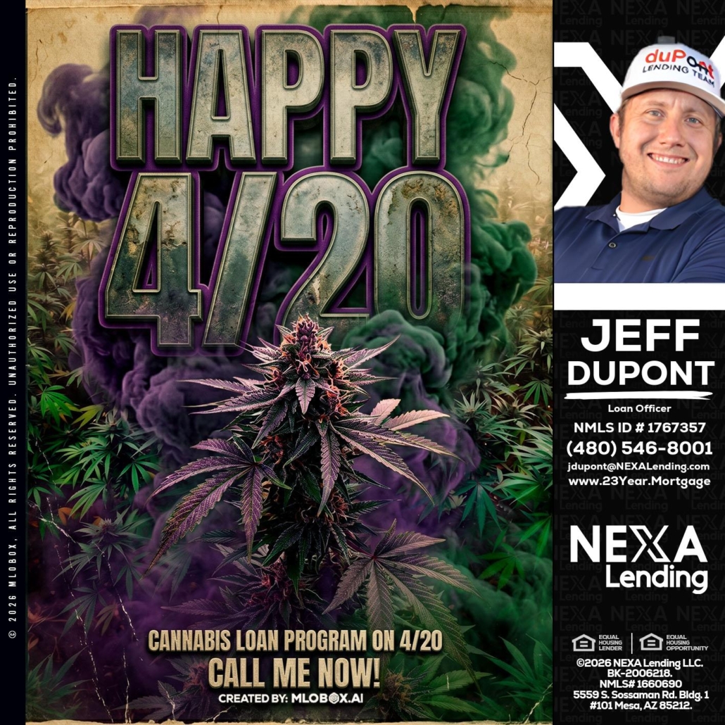 HAPPY 420 - Jeff duPont -duPont Lending TeamHi, my name is Jeff duPont. I’m a Loan Officer with NEXA Lending LLC., offering personalized mortgage solutions, fast customized quotes, great rates and service with integrity.