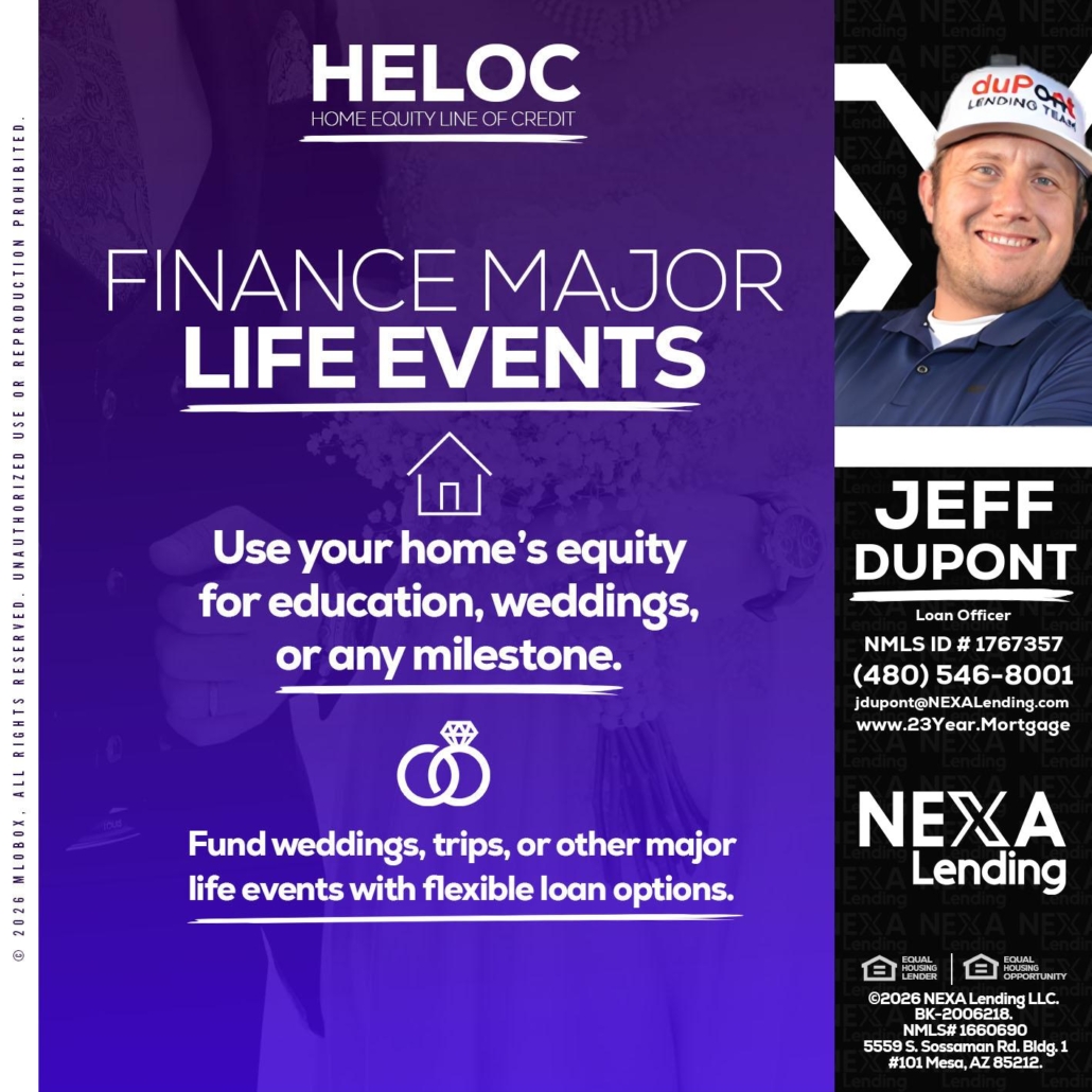 Hi, my name is Jeff duPont. I’m a Loan Officer with NEXA Lending LLC., offering personalized mortgage solutions, fast customized quotes, great rates and service with integrity.