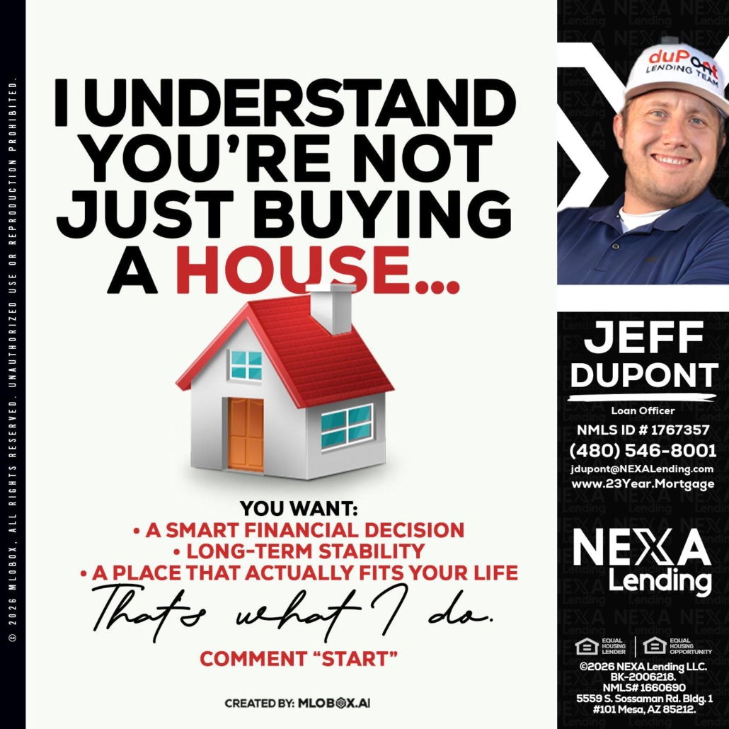 Hi, my name is Jeff duPont. I’m a Loan Officer with NEXA Lending LLC., offering personalized mortgage solutions, fast customized quotes, great rates and service with integrity.
