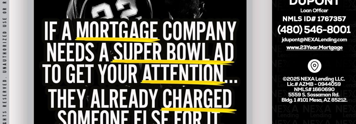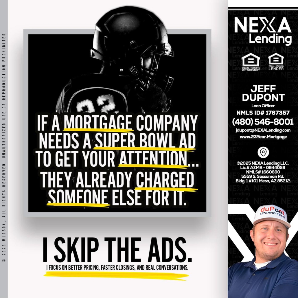 if a mortgage ad - Jeff duPont -duPont Lending TeamHi, my name is Jeff duPont. I’m a Loan Officer with NEXA Lending LLC., offering personalized mortgage solutions, fast customized quotes, great rates and service with integrity.