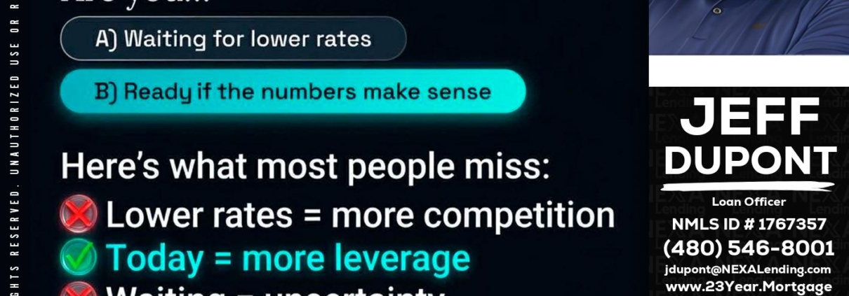 Hi, my name is Jeff duPont. I’m a Loan Officer with NEXA Lending LLC., offering personalized mortgage solutions, fast customized quotes, great rates and service with integrity.