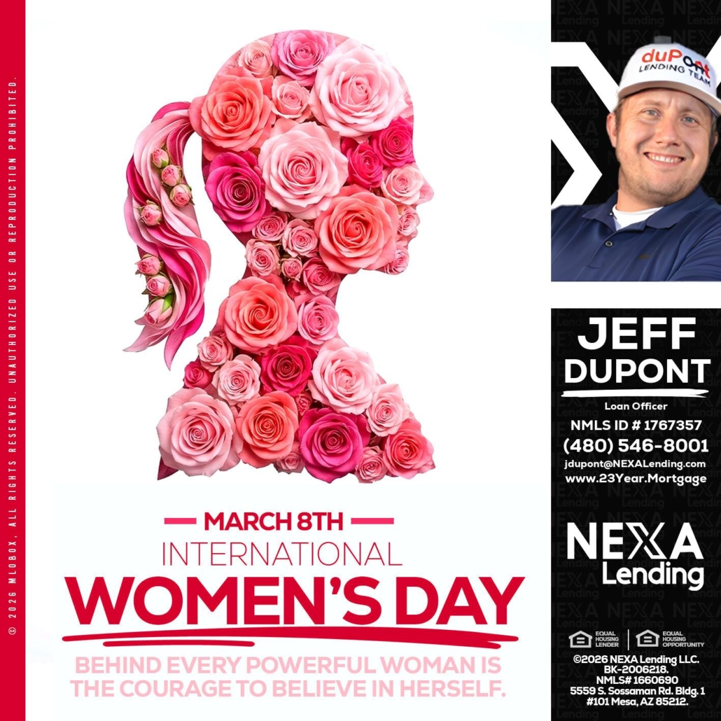 MARCH 8TH - Jeff duPont -duPont Lending TeamHi, my name is Jeff duPont. I’m a Loan Officer with NEXA Lending LLC., offering personalized mortgage solutions, fast customized quotes, great rates and service with integrity.