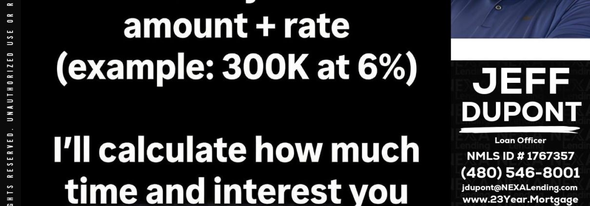 most owners - Jeff duPont -duPont Lending TeamHi, my name is Jeff duPont. I’m a Loan Officer with NEXA Lending LLC., offering personalized mortgage solutions, fast customized quotes, great rates and service with integrity.