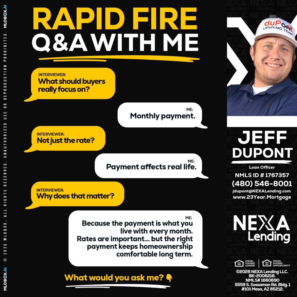 Hi, my name is Jeff duPont. I’m a Loan Officer with NEXA Lending LLC., offering personalized mortgage solutions, fast customized quotes, great rates and service with integrity.