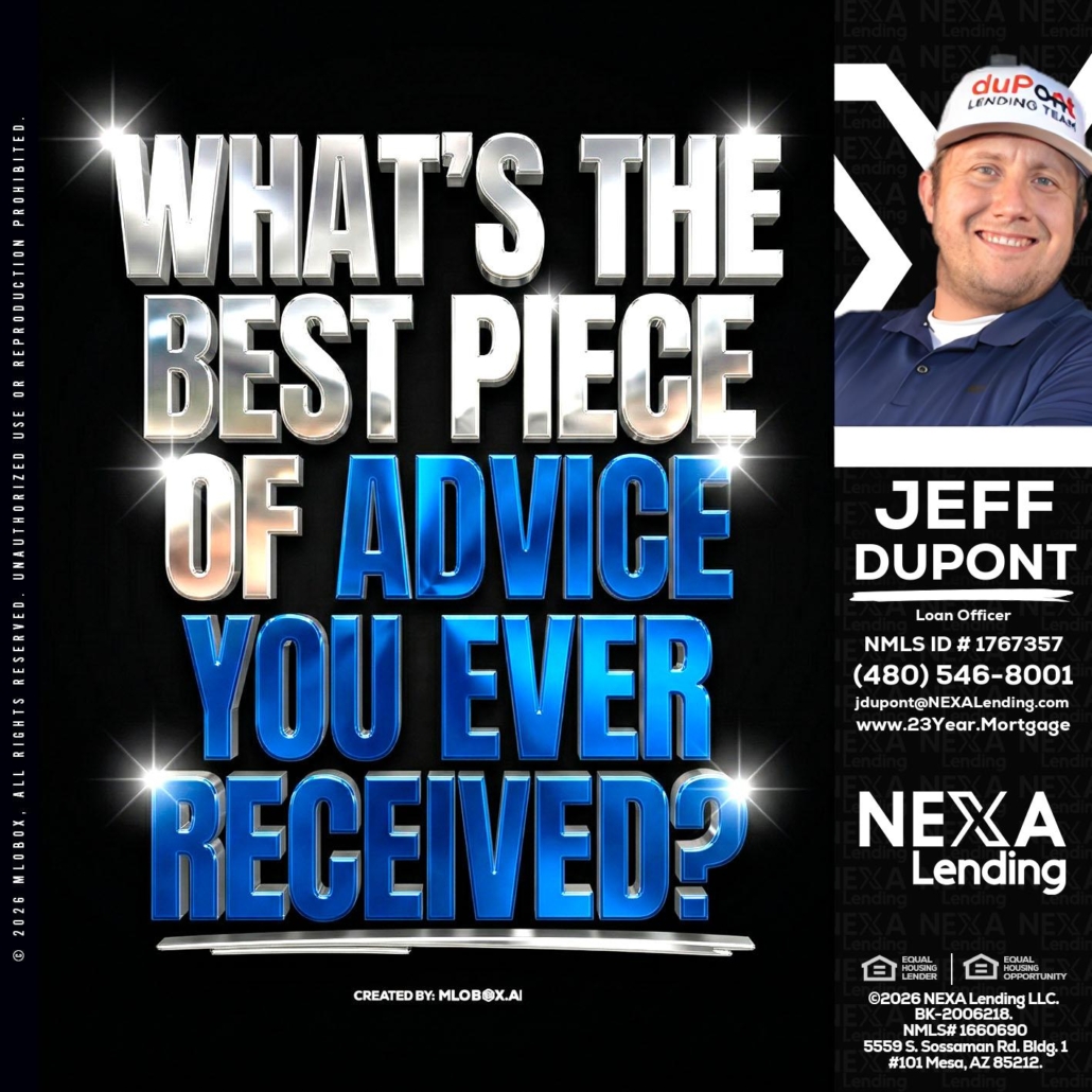 WHATS THE BEST - Jeff duPont -duPont Lending TeamHi, my name is Jeff duPont. I’m a Loan Officer with NEXA Lending LLC., offering personalized mortgage solutions, fast customized quotes, great rates and service with integrity.