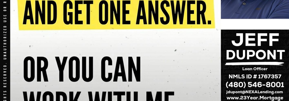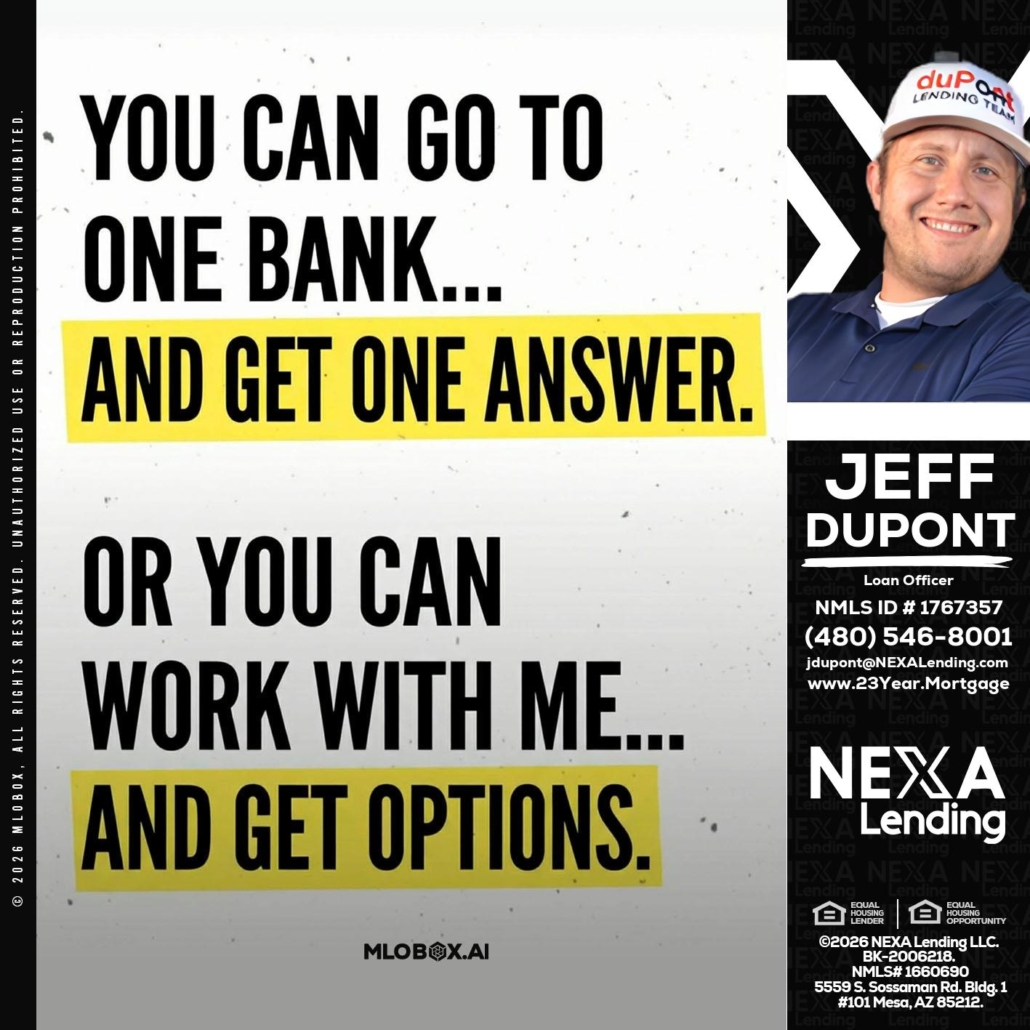Hi, my name is Jeff duPont. I’m a Loan Officer with NEXA Lending LLC., offering personalized mortgage solutions, fast customized quotes, great rates and service with integrity.